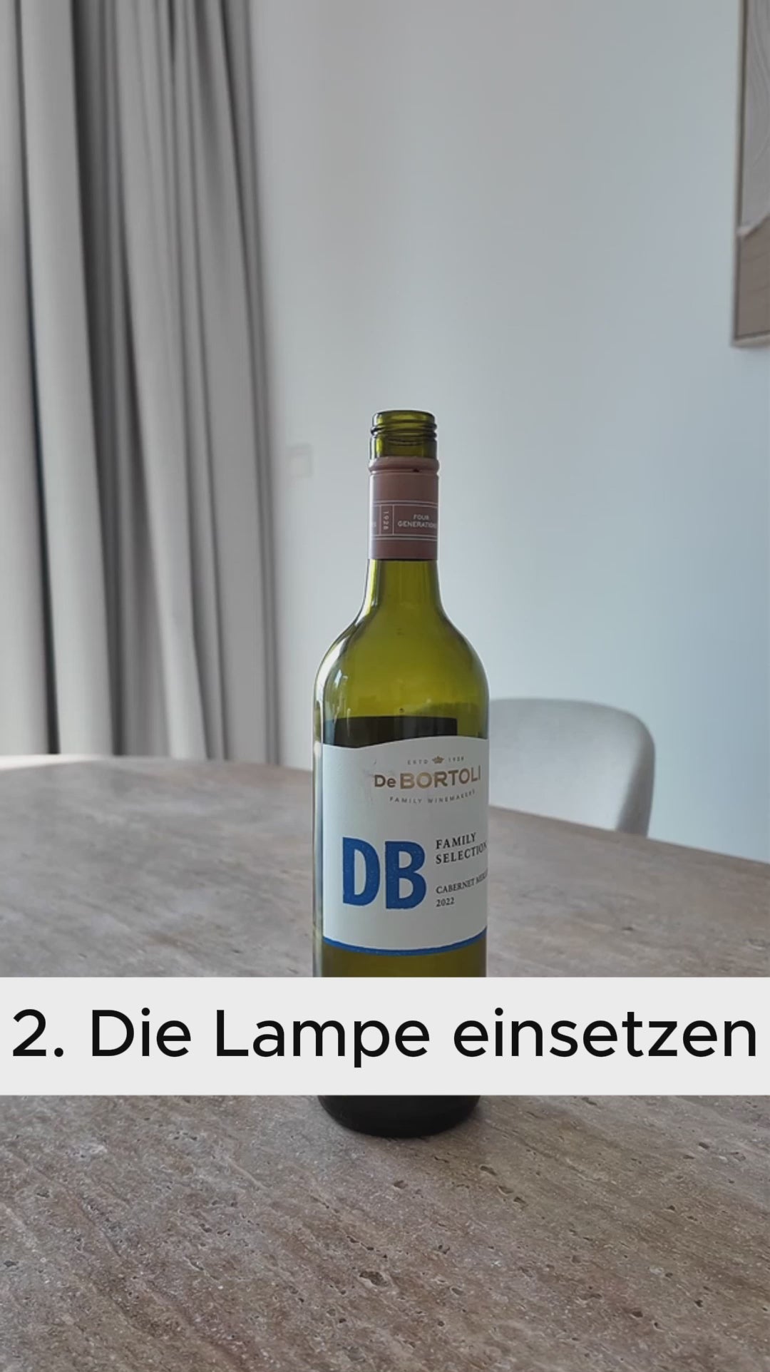 - Setze die Lampe ein: Platziere sie in der Flasche und stelle sicher, dass sie stabil sitzt.